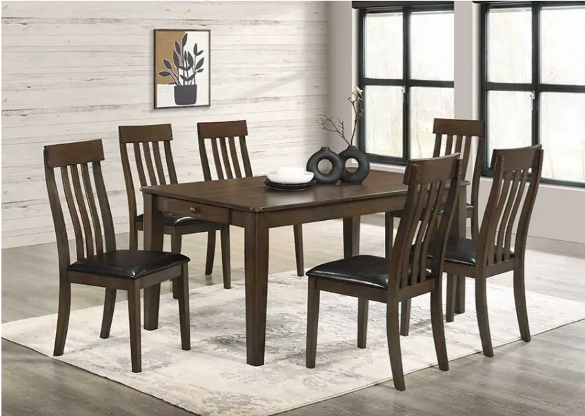 6 SEATER DINING SET MADE IN WOOD WITH WOODEN TABLE INLUDING STORAGE DRAWERS ON BOTH ENDS.