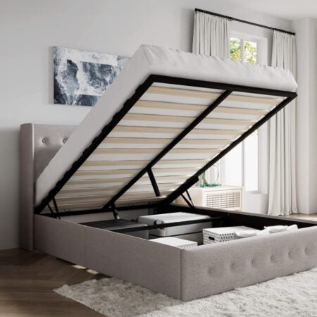 Upgrade Your Bedroom with the Hydraulic Lift Storage Bed – Where Style Meets Secret Storage! Revitalize your space with this contemporary platform bed – it’s more than just a piece of furniture; it’s a fusion of sophistication and functionality.